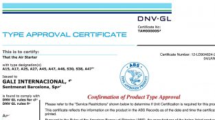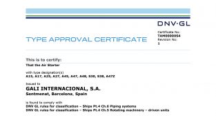 GALI updates its DNV-GL Type Approval Certificate including air starter model A48 at 40 bar