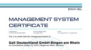 Renovation of certification ISO 9001:2015 for Gali Deutschland