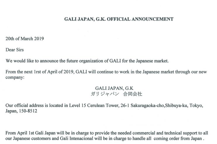 We are pleased to announce the opening of our new Gali office in Japan to provide a closer support to all our customers. We are fully committed with the Japanese market. Read the official announcement.