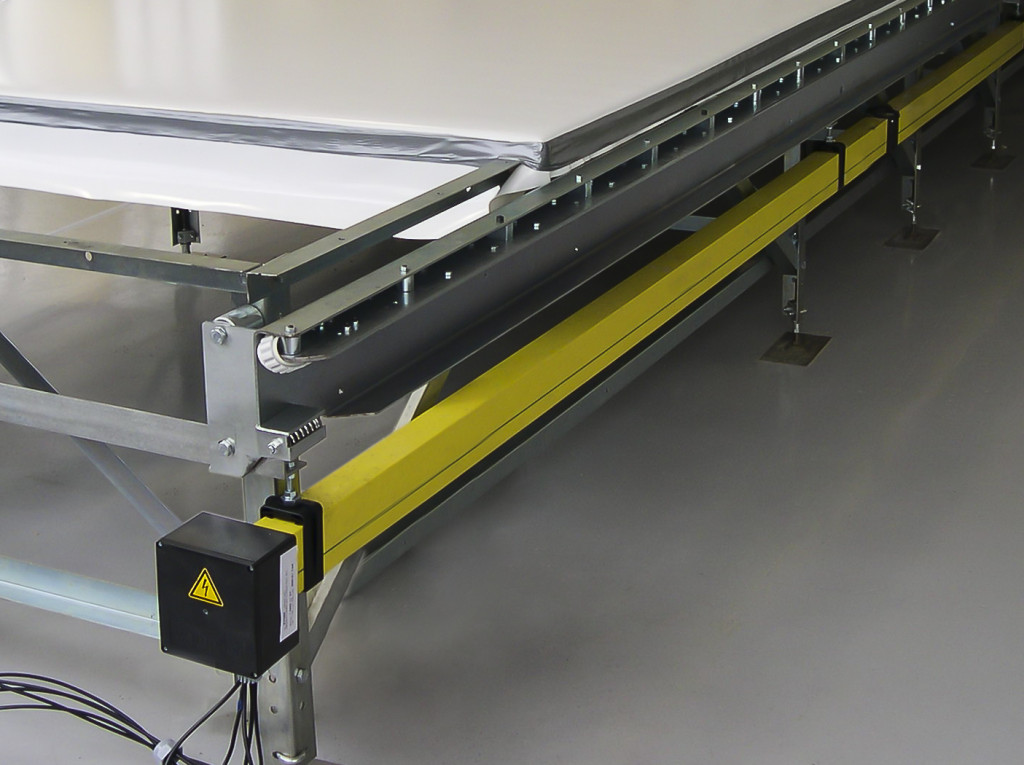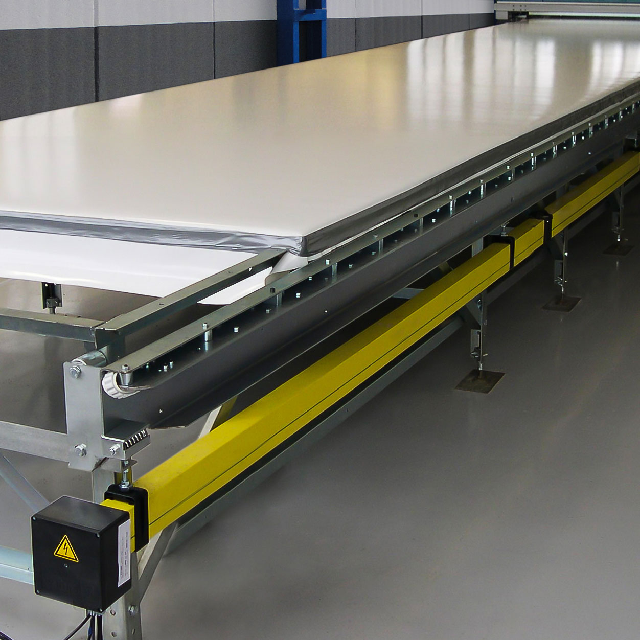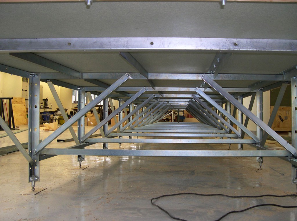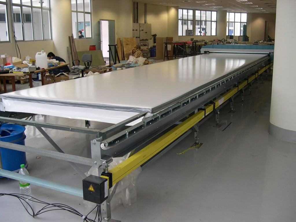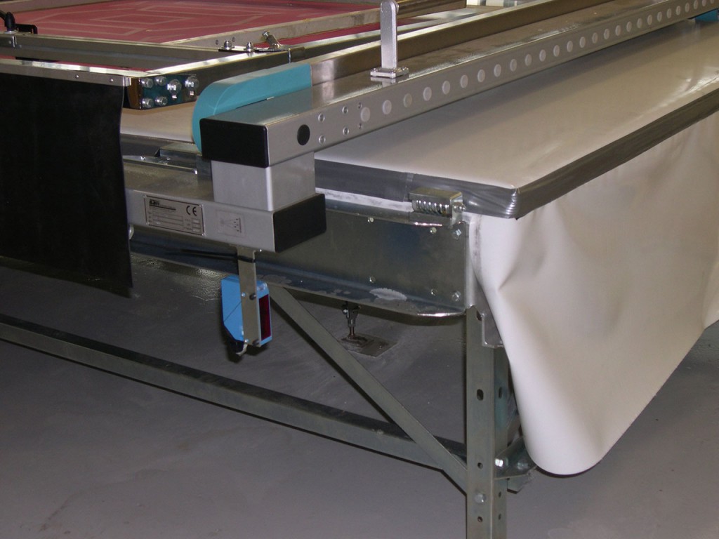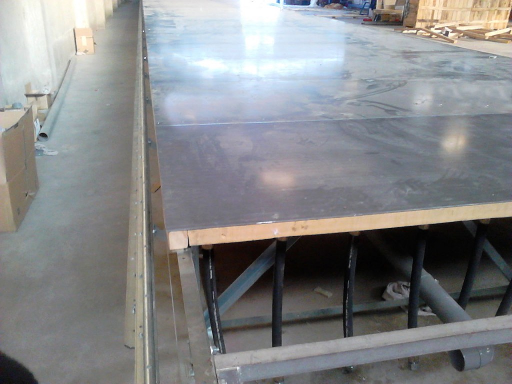 我们的标准台有金属型钢骨架构成,覆盖有防水的棉毯,其上是PVC的覆面材料。机头的轨道和台体结构紧密连接,保证其整体直线度。