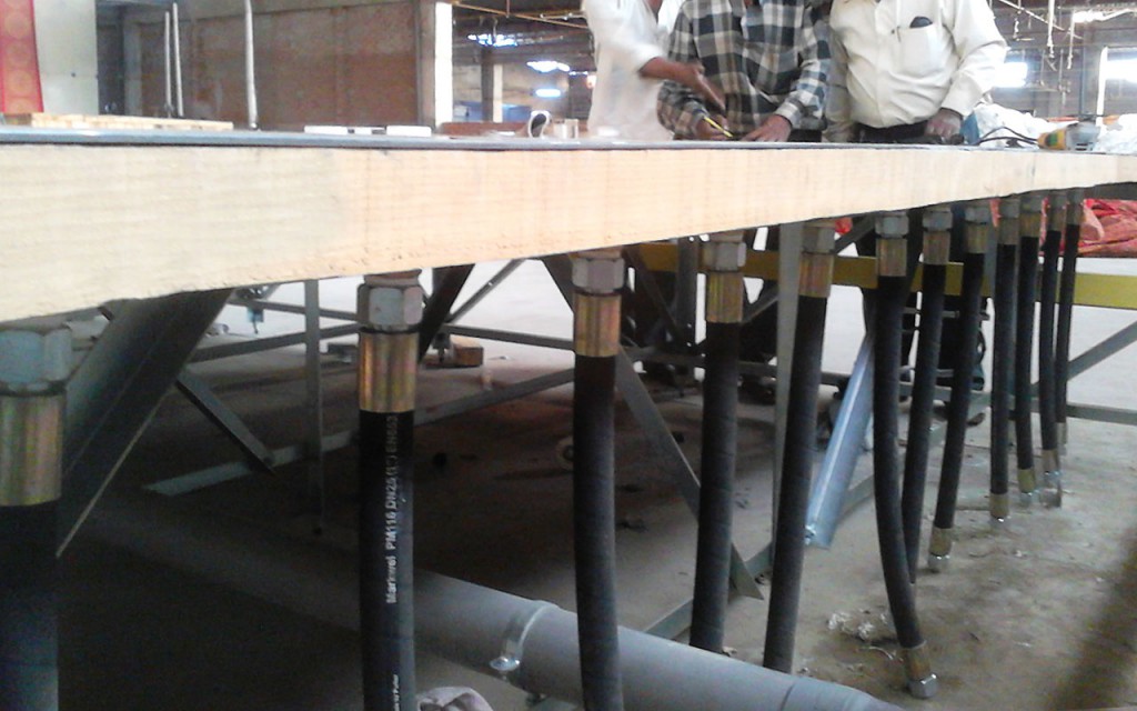 蒸汽台板有一个管线层,放置蒸汽管,其上是3mm的镀锌板,和棉毯和覆面材料。