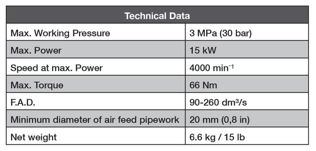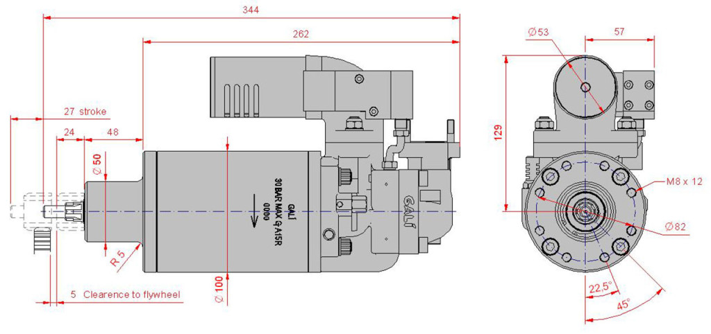 A15型空气启动马达可以启动功率300kW(400CV)左右的柴油机,其核心参数有气缸的行程,缸数和直径,和啮合齿轮和柴油机飞轮的传动比。