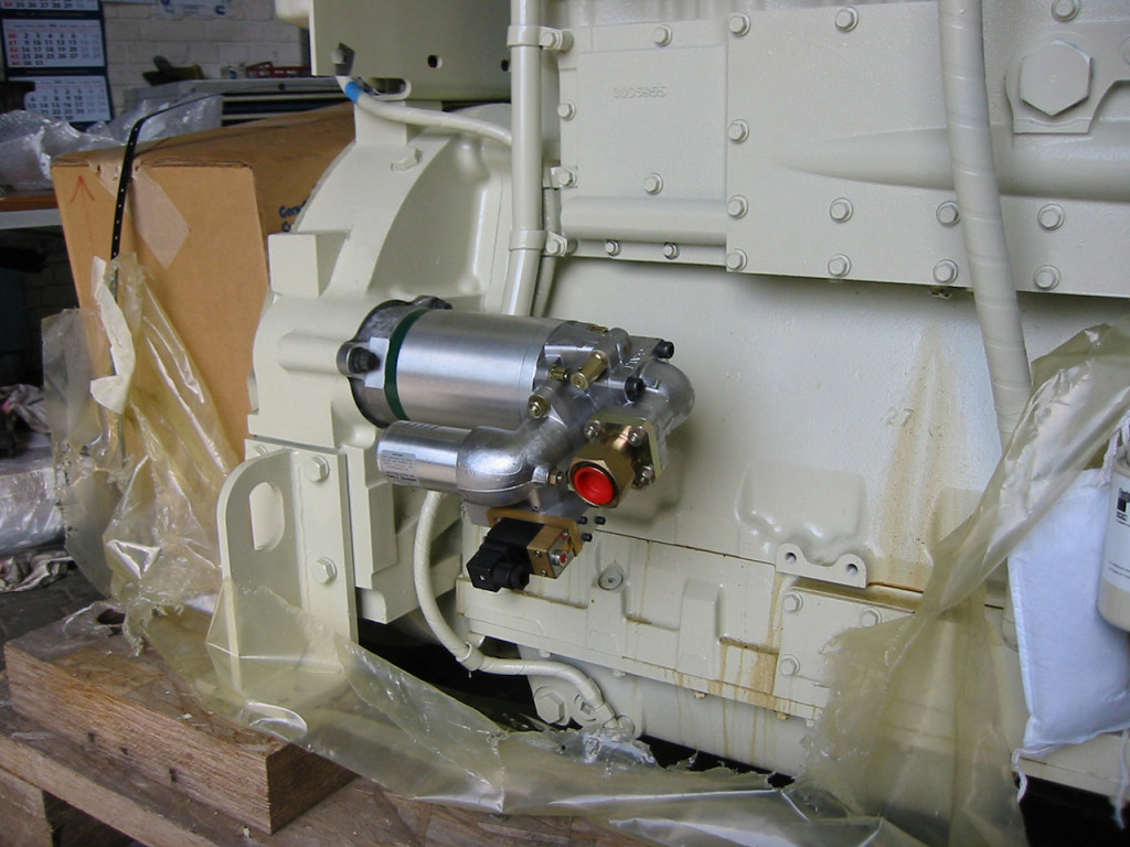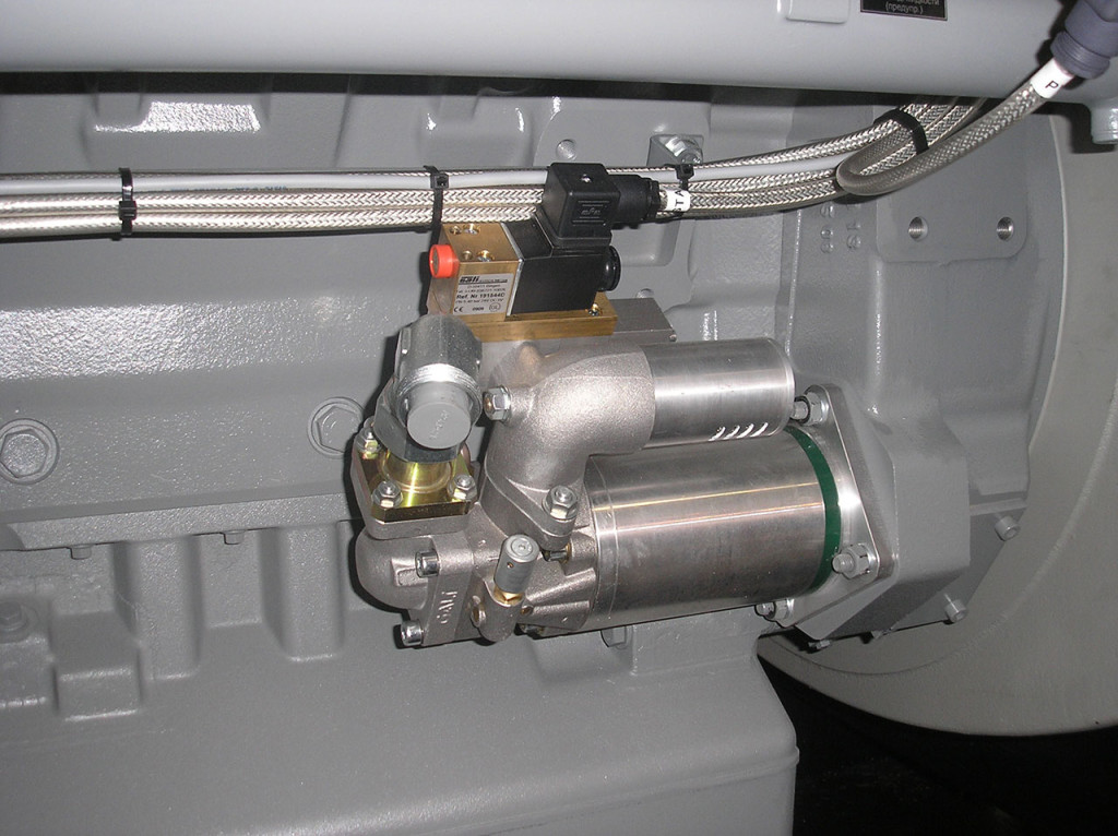 A27型空气启动马达可以启动功率220kW到1100kW(300到1500马力)左右的柴油机,其核心参数有气缸的行程,缸数和直径,和啮合齿轮和柴油机飞轮的传动比。