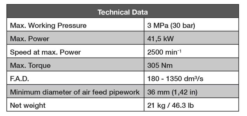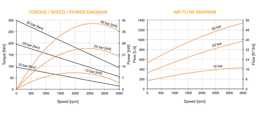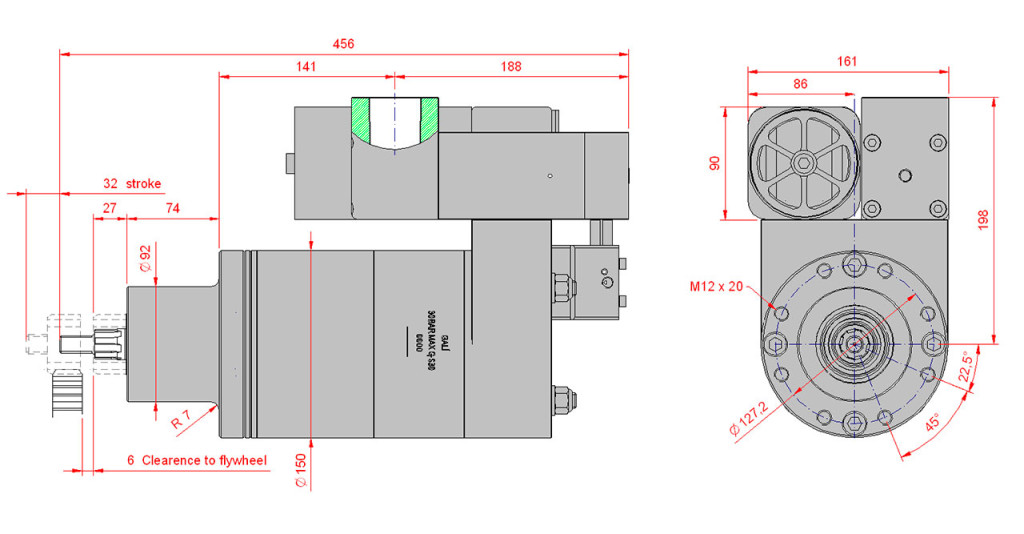 S30型空气启动马达可以启动功率750到3200kW(1020到4350马力)左右的柴油机,其核心参数有气缸的行程,缸数和直径,和啮合齿轮和柴油机飞轮的传动比。