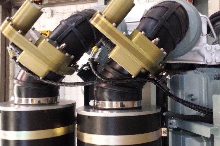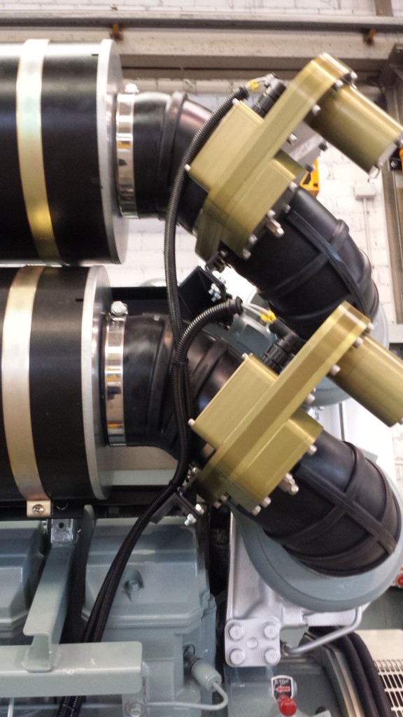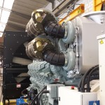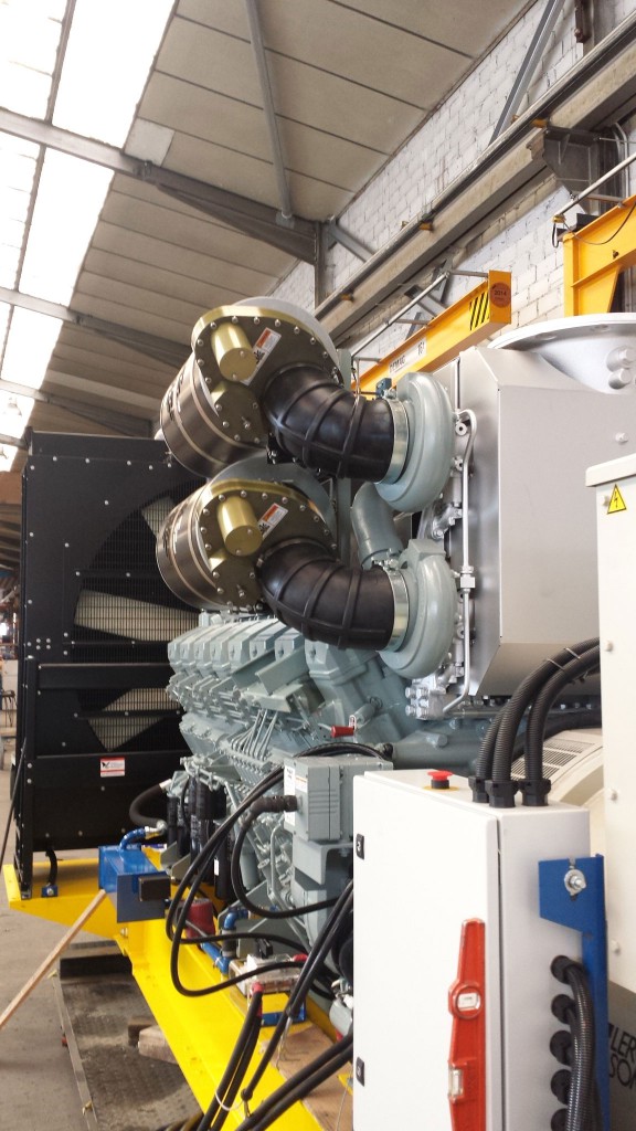 Válvulas de corte de aire de Galí instaladas en motores Mitsubishi S16R-PTA2 para la generación de energía en las construcciones del cliente en Barcelona, España.
